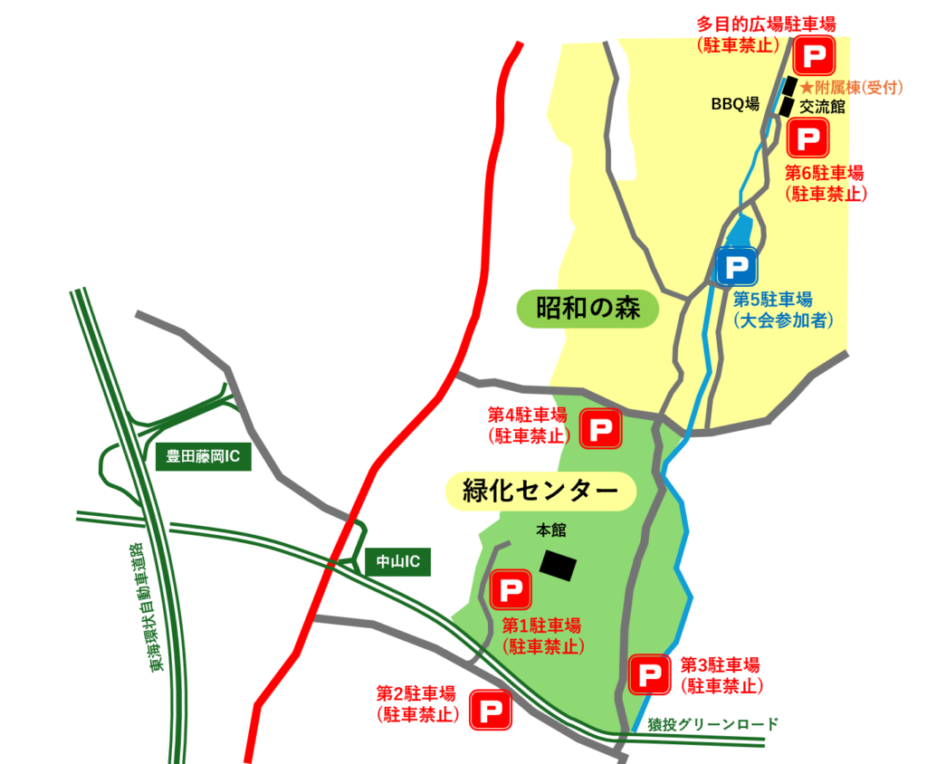 当日はGW中で一般来場者も大勢おみえになります。必ず指定された駐車場(P5)に駐車し、一般来場者のご迷惑にならないようしていきましょう!